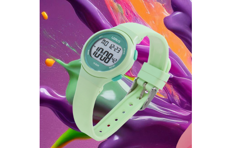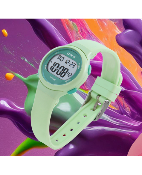La Lorus R2343QX9 est une montre digitale au design sportif et léger, dotée d’un boîtier de 32 mm et d’un bracelet en silicone vert pour un confort optimal. Pratique au quotidien, elle offre de nombreuses fonctions : chronographe, alarme, calendrier, double fuseau horaire, compte à rebours et rétroéclairage pour une parfaite lisibilité.