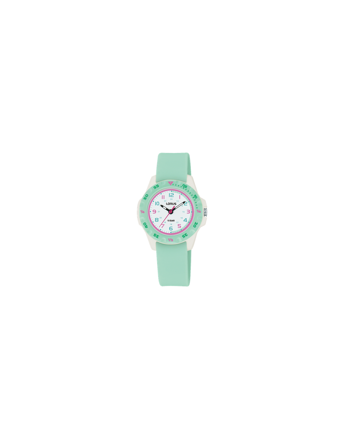 Cette montre Lorus a un boîtier Résine 29.5 mm en diamètre et est équipée d'un bracelet caoutchouc. Le boîtier contient un mouvement Seiko et la montre est dotée d'un cristal Plexi, verre d'une résistance hors norme.