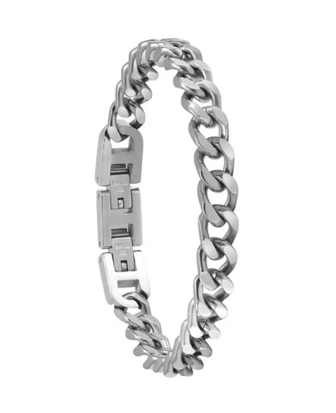Avec une largeur de 7,5 mm et une longueur réglable autour de 20,5 cm, il s’adapte parfaitement au poignet pour un port confortable. Sa maille gourmette plate lui donne un style moderne et masculin, tandis que son fermoir sécurisé clipable garantit un maintien fiable au quotidien.