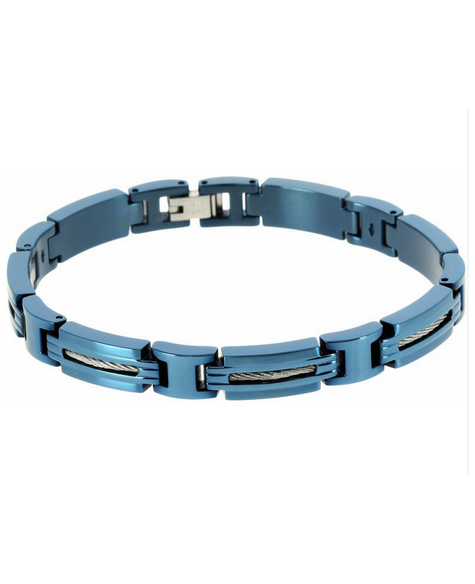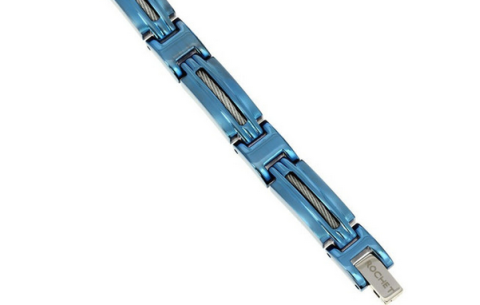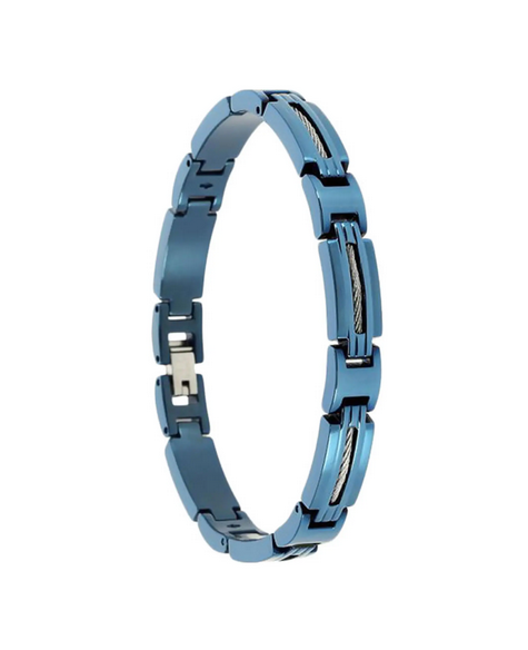 Sublimez votre style avec ce bracelet Rochet « Marina », véritable alliance de modernité et de raffinement. Confectionné en acier inoxydable avec traitement PVD bleu, il se distingue par un câble acier central gris subtilement intégré, offrant un contraste élégant et contemporain.