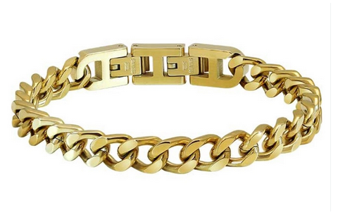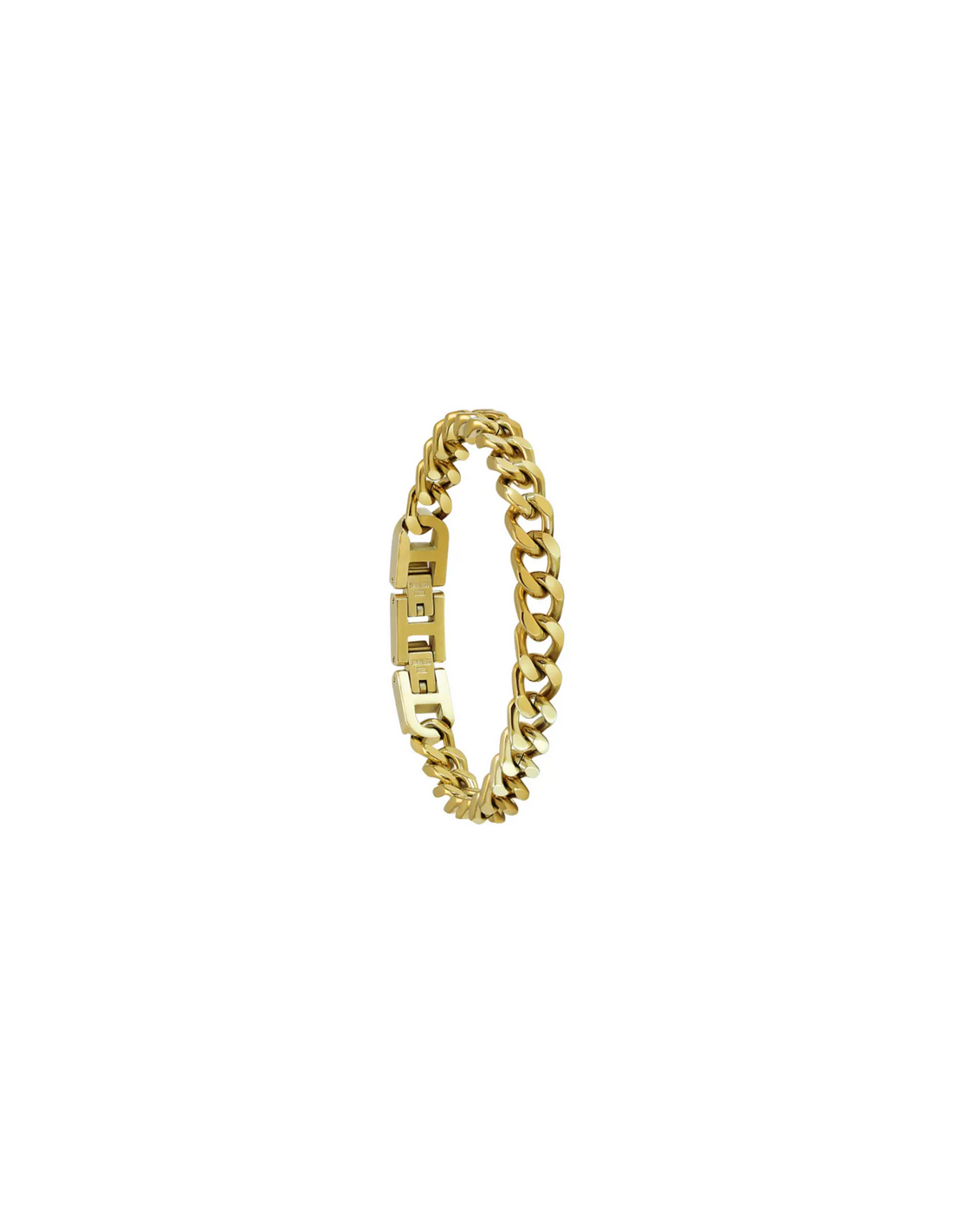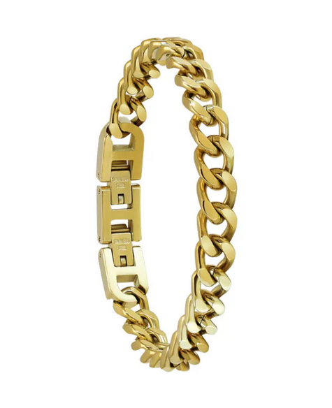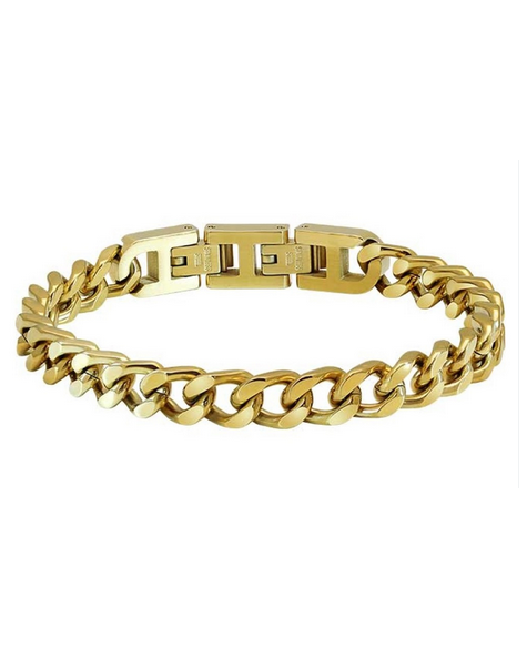 Un bracelet homme élégant en acier inoxydable finement travaillé, finition PVD jaune- finition brillante dorée. Largeur 7.5mm, longueur ajustable (~ 20.5 cm), maille gourmette classique chic. Un bijou raffiné et polyvalent qui apporte une touche de style sobre et moderne, idéal pour un look urbain ou plus habillé.