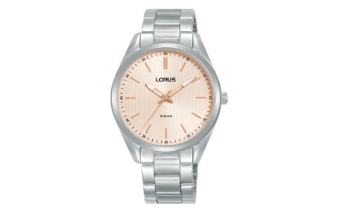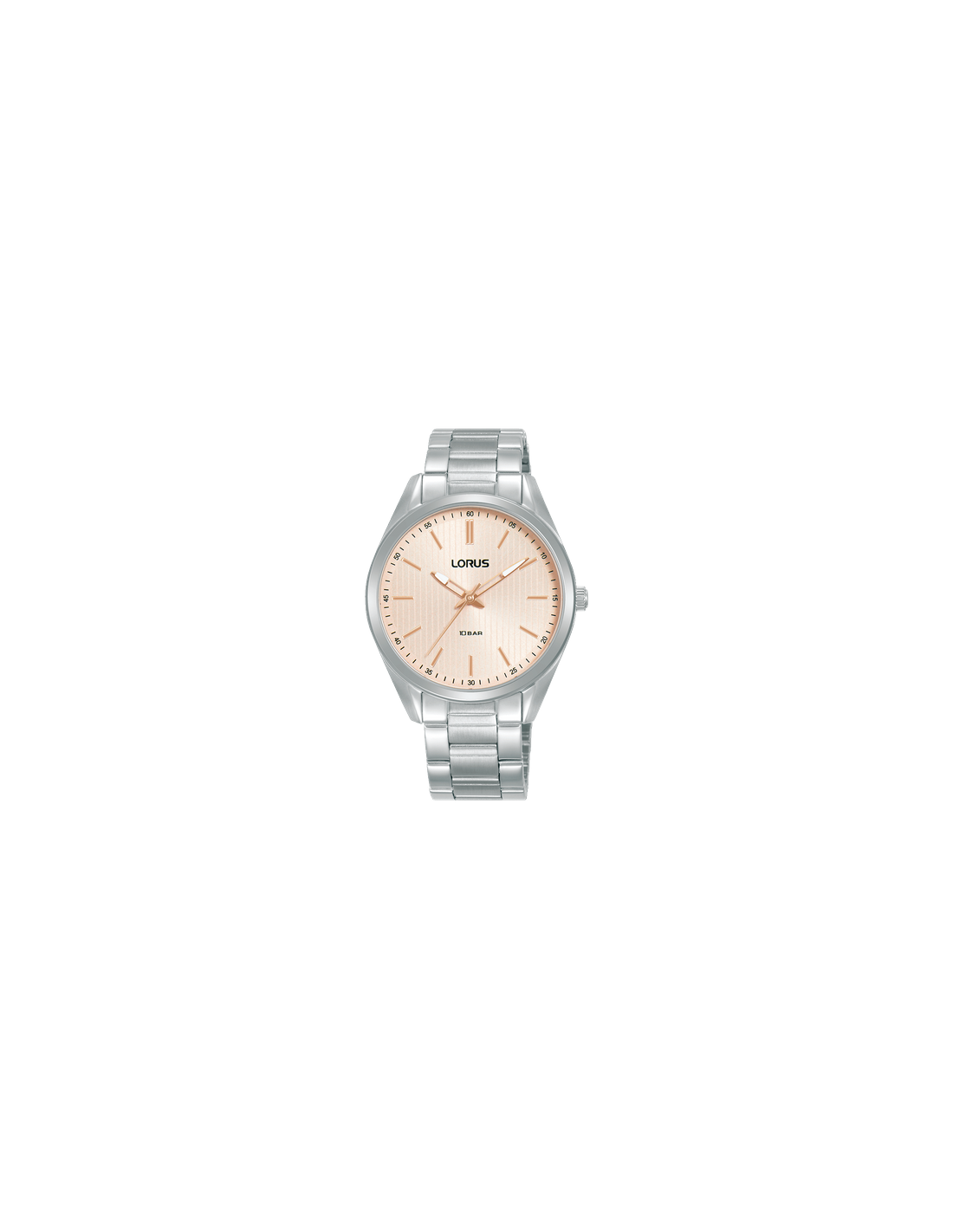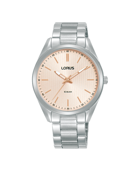 La Lorus RG213WX9 est une montre au style classique et élégant, sublimée par un boîtier en acier de 34 mm et un bracelet métallique argenté. Son cadran rose délicat (effet soleil) ajoute une touche féminine et raffinée.